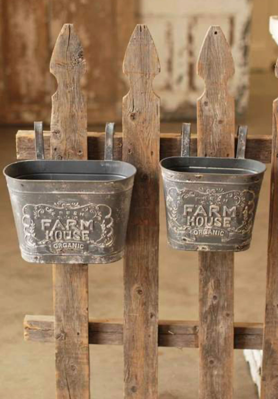 This set of two metal containers with hooks add the perfect farmhouse touch!