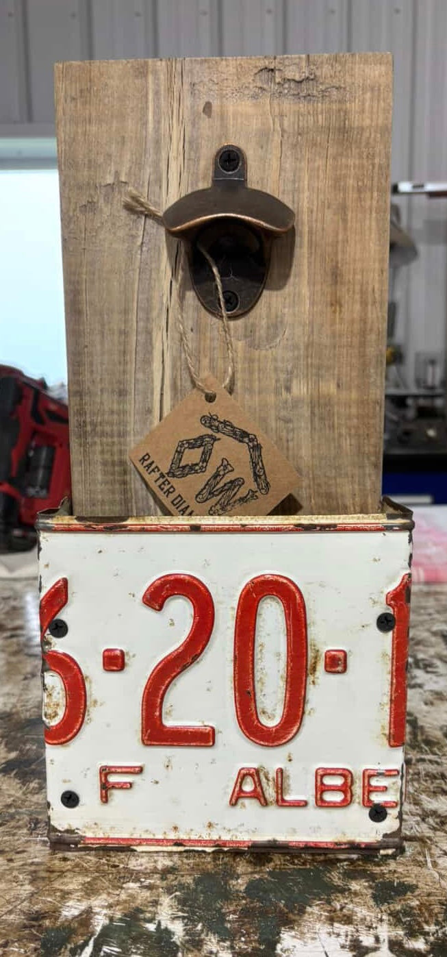 Celebrate Alberta roots with license plate bottle opener.