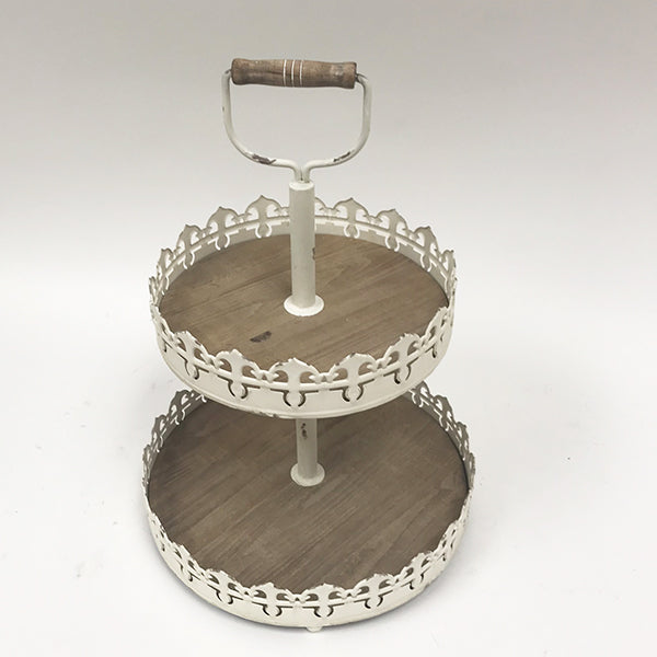 White Two-Tier Metal/Wood Tray